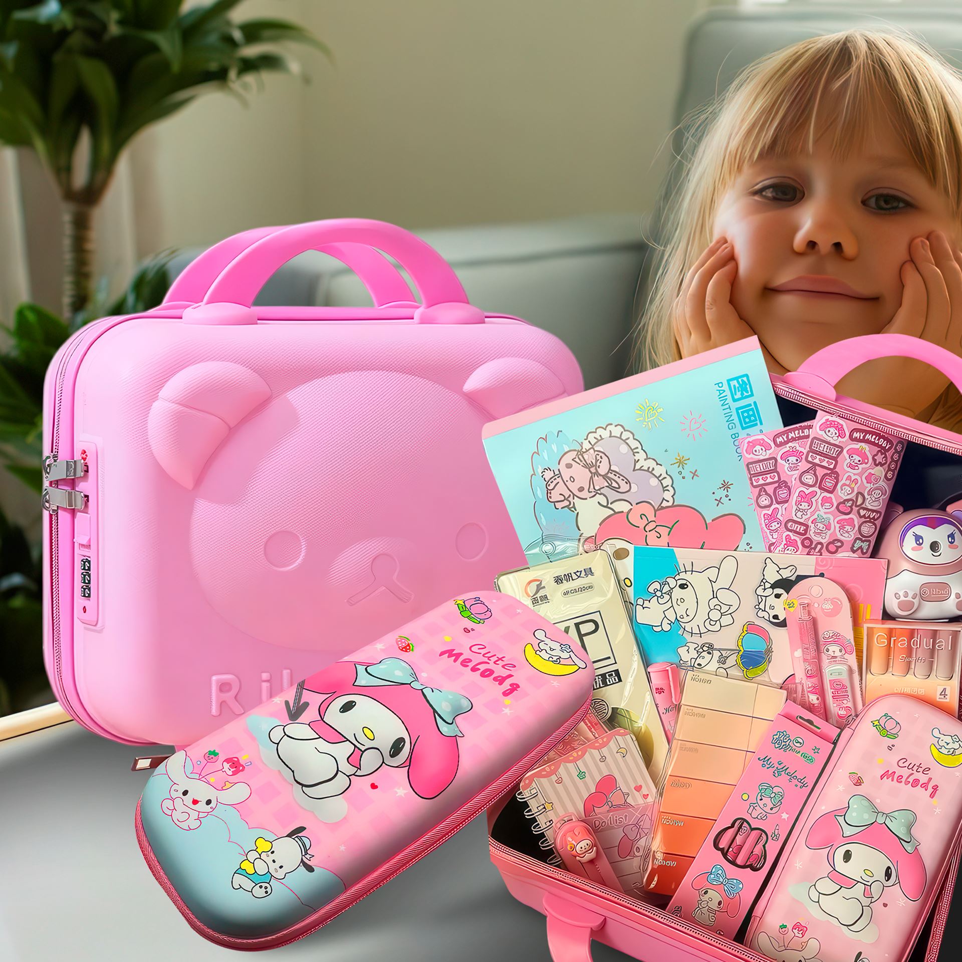 Валізка має компактний розмір та надійну конструкцію, що дозволяє зручно зберігати та переносити всі канцтовари. Яскраве оформлення робить набір ще привабливішим для дітей, підлітків і навіть дорослих поціновувачів kawaii-естетики.